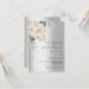 Um fundo de olhar mal prateado. Uma flor branca, florais, eucalipto verde. Personalize e adicione seus nomes e detalhes.