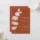Fundo laranja escuro queimado, decorado com um grande caule de eucalipto, gira. Personalize e adicione seus nomes e detalhes.