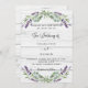 Madeira branca russa como fundo decorado com flores de lavanda e verde de eucalipto. Personalize e seus nomes e detalhes.