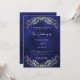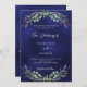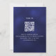 Um fundo azul marinho decorado com flores lavandas e verde de eucalipto. A cor azul é irregular. Personalize e seus nomes e detalhes. Voltar: adicione o URL do seu site de casamento ao código QR para obter detalhes e/ou RSVP.