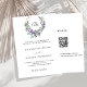 Fundo branco. Uma coroa floral feita de flores lavandas e de eucalipto verde de cor aquosa. Personalize e adicione suas iniciais, nomes e detalhes do monograma. Texto preto. Voltar: adicione o URL do seu site de casamento ao código QR para obter detalhes e/ou RSVP.