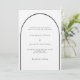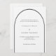Um convite de casamento elegante. Um fundo branco com um arco preto na frente.