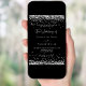 Um fundo preto chic, decorado com falso confete prateado. Personalize e adicione seus nomes e detalhes.