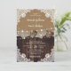 Estes elegantes e românticos convites de casamento rústicos, com corações de burlap contra madeira e fundo de renda adornados com luzes de cordas são perfeitos para convidar seus convidados para sua festa de casamento rústica de campo/celeiro.