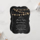 Este convite de casamento de chalkboard preto inspirado em um monte de burlap bunting em um fundo de chalkboard preto decorado com luzes de cordas é perfeito para convidar seus convidados para o seu país rústico, ao ar livre, no quintal ou na festa de casamento do celeiro.