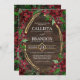 Eleve o seu casamento no inverno com este convite chique e festivo. Adorado com vermelho vermelho-queimado pintado à mão, verde-floresta e poinsettias douradas sujas, bagas ocas e folhas de mariposa, ele expele um charme luxuoso. A falsa arte imprimida borda oval pintada a ouro e o fundo da madeira rústica adicionam um toque de originalidade. Imprima seus convidados com esta design artística, moderna e única, perfeita para uma celebração festiva.