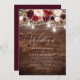 Convite Casamento de Madeira Floral Rústica Burgundy