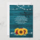 Estes incríveis convites para o casamento de girassol rústico apresentam uma elegante fronteira floral com muitas cores e opções de madeira. Personalize-os sem esforço para o seu próximo grande dia! Esta design original criada por Raphaela Wilson com aquarela e mídia mista retrata ouros de girassol amarelo, rosas vermelhas de burlu, além do hálito do bebê branco e uma mistura de flores silvestres, folhas e verde. O fundo texturizado de madeira de vintage tem um tom verde-azul e luzes de cordas que acrescentam brilho às flores. Com uma boa quantidade de espaço na parte de trás desses convites de casamento rústicos, você pode adicionar informações adicionais, como uma agenda ou nota aos seus convidados. Se preferido, você pode simplesmente excluir o texto para deixá-lo vazio ou adicionar uma foto. O script de caligrafia manuscrito e outros estilos de fonte também podem ser alterados. Várias peças de trabalho de arte podem ser reorganizadas separadamente do plano de fundo, o que inclui até as luzes de cordas. Você gostaria de uma cor de madeira alternativa para seus convites para o casamento de girassol? Personalizar ainda mais o design revela camadas ocultas de diferentes tipos de madeira, como cinzas, azul marinho, marrom quente, burgundy e também branca. Em última análise, você pode escolher qualquer cor para usar como fundo se você ocultar as camadas de madeira. As opções personalizadas são infinitas com estes convites únicos para casamento de boho, que podem adicionar aquele toque perfeito a qualquer outono, verão, inverno, ou decoração ou chá de panela de casamento de um país primavera. Categoria: convites para casamento elegantes, convites para aquarelas; e convites para casamento de países. Cores temáticas da paleta de casamento russa: amarelo de girassol de ouro, lacre, turquesa, aqua, verde-azul, burgundy, marsala, vermelho, marrom, com acentos de verde-menta e branco.