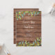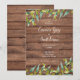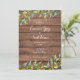 Um convite de casamento de jardim country chic com folhas frescas naturais de eucalipto, folhagem verde, enquadrando os detalhes do seu casamento em script elegante e tipografia clássica em um fundo de madeira rústica. Projetado por Thisisnotme©