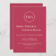 Apresentando nosso convite de casamento monograma moderno com um toque de sofisticação e elegância, apresentando tipografia de ouro clássico em um fundo magenta vibrante. Este convite é a escolha perfeita para o casal que quer fazer uma declaração única no seu dia especial. A elegante tipografia dourada mostra seu monograma único, acrescentando um toque de luxo à sua celebração. O fundo magenta em negrito cria um incrível contraste, fazer este convite inesquecível. Impresso em estoque de cartão de alta qualidade e disponível na sua escolha de tamanho e tipo de papel, este convite oferece um toque luxuoso e personalizado. Quer você esteja procurando por um design minimalista ou uma declaração ousada, este convite monográfico moderno certamente impressiona seus convidados e dá o tom para uma celebração inesquecível. Celebre sua história de amor em estilo com este convite elegante e moderno de monograma.