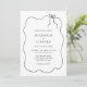 Convide seus convidados para seu dia especial com este convite de casamento inspirado na coquete minimalista, misturando elegância do eterno com um charme delicado. Com uma fita desenhada graciosamente à mão e uma borda de arco, a design exumenta uma sutil feminilidade e sofisticação. A tipografia limpa e moderna destaca os nomes dos casais em letras maiúsculas em negrito, criando um foco impressionante contra o esquema de cores preto e branco subestimado. Perfeito para um tema romântico e clássico de casamento, este convite capta uma estética coquete com seus detalhes graciosos e na moda. Personalizável para incluir as informações exclusivas de seu evento, ele define lindamente o tom para uma celebração inesquecível.