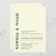 Este convite apresenta um fundo de marfim sofisticado com um design minimalista. Os nomes do casal são destacados em tipografia ousada e elegante, acrescentando um toque de elegância moderna ao convite. A parte traseira apresenta código QR e iniciais de monograma.