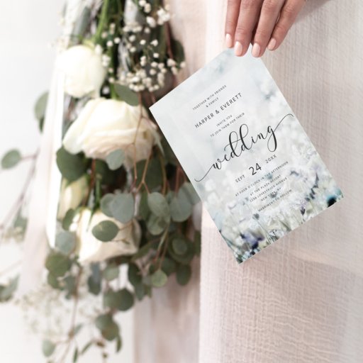 Meadow Song desaparecendo em Wildflower em um campo romântico Design com imagem sutil de fotografia. Um rusticado boêmico procura um casamento ao ar livre, jardim, inspiração na natureza, em azul branco, suave e roxo violeta. - Convites De Casamento! ~ Cheque meu compro para ver a suíte inteira para este design!
