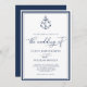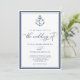 Este clássico design de convite náutico elegante apresenta um monograma de âncora no topo, com caligrafia de guião e um quadro duplo, num esquema de cores azul e branco marinho. Encontre produtos correspondentes na coleção, ou envie-me mensagem através do Zazzle Chat para mais produtos, variações de cor ou outros ajustes de design.