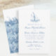 Faça velejar para o seu casamento costeiro perfeito com o nosso elegante convite para casamento de veleiros azuis e ondas. Projetado para amantes do oceano, este convite de temas náuticos evoca a brisa serena e o encanto do eterno. Ideal para comemorações em locais de estreia como o Clube de Praia de Wychmere em Cape Cod, Montauk de Gurney, Belle Mer em Newport, e casamentos de iates ao longo da Costa Leste. Trabalho de arte por Designs de Mapa Costeiro.