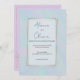 Uma mistura sonhadora de shimmer holográfico, lavanda macia e azul pastel define o tom para estes convites para casamentos etéreos de mármore. Raios deliciosos criam uma canvas romântica e moderna que parece mágica e serena. Detalhes iridescentes captam a luz, adicionando um toque de encanto celeste. Perfeito para casais que buscam uma celebração caprichosa, mas elegante.