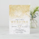 Convite Casamento de mármore branco com brilho de ouro mod