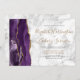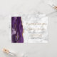 A borda esquerda deste elegante convite de casamento moderno apresenta uma cor d'água roxa, borda agitada, aparada com falso brilho dourado. O texto personalizável combina manuscrito preto e dourado, fontes em copperplate e itálico em uma cinza e fundo de mármore branco. A cinza e o padrão de mármore branco são repetidos na parte traseira da placa.