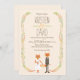 Esta encantadora coleção de convites para o casamento apresenta um casal bem vestido de raposa cercado por uma terra de folhas desenhadas à mão em um arranjo rústico de coroa.