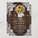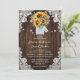 Convite Casamento de Mason Jar Lace Rustic Wood Sunflower
