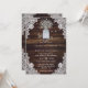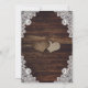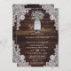 O convite para o casamento de bebês de campo russo apresentando flores para o hálito de bebê dentro a jarro de pedras contra um fundo de madeira rústica decorado com rendas florais brancas e luzes de cordas. Personalize facilmente o convite de casamento do bebê romântico para o seu país rústico, ou festa de casamento de celeiro.
