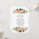 O Convite para Casamento Floral e Verde de Aquarela Elegante Moderna inclui rosas de flores avermelhadas, azuis, arrojadas, ouros de amarelo e verde botânico.