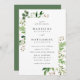 Convites de casamento elegantes, botânicos, com uma estrutura retangular de folhagem aquosa em tons de primavera e verde-musgo. Personalize o convite de casamento boho verde com seus nomes e detalhes de casamento. O convite de casamento botânico moderno é perfeito para casamentos de primavera e verão.