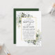 O Cartão de Convite para Casamento de Cores Biológicas Elegantes Modernos inclui folhas de eucalipto, folhagem botânica verde, folhas azuis empoeiradas e outros belos lençóis botânicos. Quadro Dourado, Fundo Verde