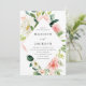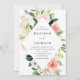 Elegante convite de casamento floral com seus nomes e detalhes de casamento emoldurados por flores brancas e cor-de-rosa com folhas verdes e peludas. Personalize os convites de casamento florais cor-de-rosa com os detalhes de seu casamento abaixo. O convite para o casamento floral de aquarela é uma escolha moderna perfeita para casamentos de primavera e verão.