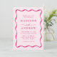 Apresentamos o convite para o casamento do Modern Black Wavy Frame, onde boho se encontra com o Retro numa celebração harmoniosa do amor! Com a ousada inscrição cor-de-rosa a dançar sobre o fundo da rosa claro, enfeitiçada com uma estrutura ondulada que lembra o charme vintage, este design caprichoso define o tom perfeito para o seu dia especial. Personalizado com os nomes dos casais e os detalhes do casamento, cada elemento exumenta um ar de nostalgia e elegância moderna. Aceite o encantamento de sua união com este convite único, convidando seus convidados a se juntar à alegria de sua história de amor boho-retrô.