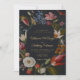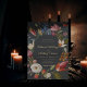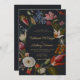 Esse convite encantador e único para o casamento apresenta uma fina estrutura floral com vários tons de flores cor-de-rosa e vermelha abarrotadas, no estilo dos velhos mestrados holandeses, colocados contra um fundo preto profundo e temperado. A elegante caligrafia e o texto dourado acrescentam um toque de luxo e sofisticação. Uma escolha encantadora para noivas que amam a estética romântica, o tema gótico e os convites de casamento obscuros, este convite certamente vira cabeças e cria uma atmosfera sofisticada e romântica para o seu dia especial.