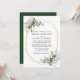 O Cartão de Convite para Casamento de Cores Biológicas Elegantes Modernos inclui folhas de eucalipto, folhagem botânica verde, folhas azuis empoeiradas e outros belos lençóis botânicos. Quadro Geométrico Dourado, Fundo Verde