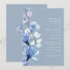 Este elegante convite de casamento floral transparente, azul e empoeirado pode ser personalizado com sua informação em tipografia quic com seu monograma no verso. Projetado por Thisnotme©
