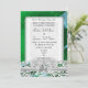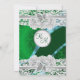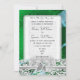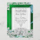 Uma cor damasco verde vítrea brilhante invulgar, vívida e vívida, com um espiral azul claro de fita e um filigre branco e um rendas floral. Este design lírico, bonito e feminino, serviria aos casamentos irlandeses ou celtas ou a alguém que gosta de preferencialmentes de cores ousadas do que o branco tradicional. Adicione facilmente suas informações de casamento, noivas e monogramas às modelos para criar um convite personalizado único para seu dia especial.