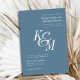 Convite Casamento de Monograma Clássico Elegante Azul Dust