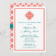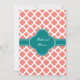 Convite Casamento de Monograma Coral Rosa e Teal Quatrefoi