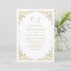 Convite Casamento de Monograma de Frame Folha Dourada Eleg