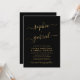 Cartão de Convite para Casamento de Nome do Monograma Dourado e Preto de Manuscrito Moderno Minimalista. Apresentando um nome monográfico enorme em um script de fontes de letras maiúsculas e minúsculas elegante, escrito à mão, em preto e ouro. Personalize o convite com um texto personalizado simples e elegante, incluindo os nomes dos casais e todos os detalhes essenciais da cerimônia de casamento. Peça agora e faça sua celebração de casamento realmente inesquecível!