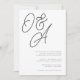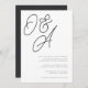 Um belo convite de casamento baseado em tipografia, com as suas iniciais em letras de escrita sobredimensionadas no topo. Personalize com seus detalhes de casamento em letras clássicas de serif alinhadas no canto inferior direito. A nossa cinza de Cinza faz uma declaração clássica com letras negras suaves em um fundo branco nítido.
