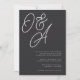 Um belo convite de casamento baseado em tipografia, com as suas iniciais em letras de escrita sobredimensionadas no topo. Personalize com seus detalhes de casamento em letras clássicas de serif alinhadas no canto inferior direito. A nossa cinza de Cinza faz uma declaração clássica com letras brancas nítidas sobre um fundo preto suave.