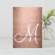 Elegante Faux Rosa Dourado Convite para Casamento Negro com Monograma Inicial. Design por Elke Clarke © para MonogramaGallery no Zazzle. Efeito da folha de ouro rosa impressa. Design simples e moderno, com ouro rosa e cores de casamento preto para um caso sofisticado.