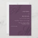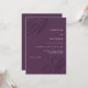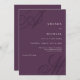 Um simples design minimalista moderno com uma aresta elegante, este convite de casamento único apresenta belos monogramas de escrita caligráfica da noiva e do noivo em cantos alternativos. Um layout de texto neat exibe os detalhes do seu casamento com um olhar clássico limpo com um fundo roxo de ameixa de outono e texto de marfim com iniciais de monograma de caligrafia mais escura. Substitua o texto do exemplo por suas informações. Você pode mover suas iniciais levemente para a esquerda ou para a direita, para cima ou para baixo para acomodar sua melhor exibição neste formato de design. Os monogramas parecem melhores quando correm ligeiramente para fora das bordas. Altere qualquer texto do convite para se adequar ao seu estilo pessoal e preferências.