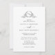 Convite de casamento elegante com delicado monograma de arte desenhado com noiva e iniciais de noiva. Cheio simples e limpo de elegância e graça. Frente em cor branca de fundo enquanto texto e monograma são pretos. De volta a preto elegante. Também disponível em branco. Opção para alterar as cores de fundo frontal e traseira para qualquer cor que você quiser, usando a "Ferramenta do Editor". Parte da nossa coleção "Elegance Minimal Black and White Monographic Wedding" com uma variedade de produtos de coordenação disponíveis. Visite a coleção inteira em: https://www.zazzle.com/collections/elegance_minimal_black_and_white_monogram_wedding-119677926842478970