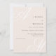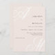Um design moderno chic com uma borda, este convite de casamento mínimo moderno apresenta belos monogramas de escrita caligráfica da noiva e do noivo em cantos alternativos. Um layout de texto elegante exibe os detalhes do seu casamento com um visual clássico limpo com grandes iniciais brancas e texto preto sobre um fundo rosa embebidamente suave. Substitua o texto do exemplo por suas informações. Você pode mover suas iniciais levemente para a esquerda ou para a direita, para cima ou para baixo para acomodar sua melhor exibição neste formato de design. Os monogramas parecem melhores quando correm ligeiramente para fora das bordas. Altere qualquer texto do convite para se adequar ao seu estilo pessoal e preferências.