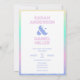 Gradiente de Ombre Holográfico em neon cores cor-de-rosa, azul roxo, amarelo com monograma, moderno convite personalizado de casamento. Este cartão é facilmente editável. Se precisar de ajuda para a personalização desta placa ou se precisar de mais produtos correspondentes para esta coleção, envie-me gentilmente através do Zazzle.