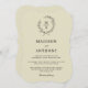 Uma escolha saborosa e clássica em convites para casamento, esta design transmite uma elegância simples no seu layout de texto e estilo de forma de colchete. Uma simples coroa de louros aberta de folhas esboçadas envolve o monograma inicial da noiva e do noivo num fundo bege médio neutro. O elegante e simples modelo de texto está pronto para personalizar com seus detalhes de casamento. Este convite é uma escolha versátil para casamentos em qualquer estação do ano e para qualquer local de casamento, seja uma cerimônia religiosa solene ou um caso de tipo secular em um salão de banquete, adega, museu, restaurante, clube privado ou um casamento rústico fora da natureza. Este convite está disponível em uma variedade de estilos de forma (mostrados na forma entalhada), assim como em várias cores, tipos de papel e pesos diferentes.