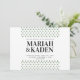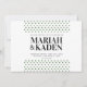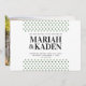 Pequenos triângulos verdes da floresta sobre um fundo branco limpo, faça este convite de casamento mínimo a forma perfeita de convidar os seus convidados para o seu casamento ao ar livre! As inscrições modernas e elegantes mantêm este convite simples e limpo, enquanto os triângulos podem representar montanhas ou árvores. Personalize o convite adicionando uma foto atrás ou exclua a camada de fotos para encontrar uma camada verde coordenadora com espaço para os nomes da noiva e do noivo.