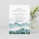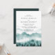 Convite de casamento elegante e rústico com montanha em aquarela com árvores e tipografia clássica.