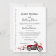 O passeio é mais doce com alguém que você ama, convite de casamento com design caprichoso de moto vermelha e preta com texto mutável.