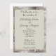 Um simples convite de casamento de na moda para aqueles que preferem um visual limpo de vintage. Seu texto personalizado é impresso em uma cobertura de bloco central de borda rasgada, com um fundo floral de pewter em relevo. As fontes de estilo Vintage foram escolhidas para completar a aparência, mas podem ser facilmente alteradas. Adicione um toque moderno com a adição do seu próprio código QR atrás.